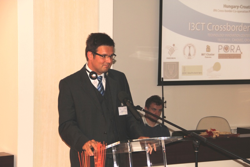 I3CT Crossborder Clustering Opening conference was held in Čakovec in the premises of the Technology Innovation Centre on 18th October 2011. A great number of people participated at the event which indicates the relevance of the topic of the project. Participants from the private sector, educational institutions, SMEs supporting institutions and local authorties were greeted by Mr. Ivan Perhoč, Međimurje County Prefect, dr. Zoltán Birkner, head of the Nagykanizsa Campus, Pannonia University and Mr. Matija Derk, director of Regional Development Agency Međimurje REDEA d.o.o. Neccessity of collaboration between educational and private sector backed by SME supporting institutions in both Croatia and Hungary was a main feature of all introductory speeches. Quality and success of previous crossborder cooperation between project partners are the key to success of I3CT project and other futher projects. After the introductory speeches, Ms. Antonija Bedeniković, representative of the IPA crossborder programme Hungary – Croatia gave a presentation and announced a new call for submission of project proposals in November this year. Rest of the conference was dedicated to detailed presentation of the project where each of the partners had the opportunity to present its future role and activities to be implemented in scope of the I3CT project.